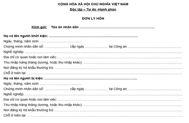 Luật Tiền Phong – Trong xã hội hiện đại, có rất nhiều nguyên nhân làm cuộc hôn nhân kết thúc bằng lá đơn ly dị. Tuy nhiên không phải ai cũng biết cách trình bày một lá đơn ly hôn đầy đủ thông tin, rõ ràng như thế nào để từ đó Tòa có căn cứ giải quyết yêu cầu xin ly hôn. Sau đây Luật Tiền Phong xin cung cấp mẫu đơn ly hôn mới nhất nhằm tạo điều kiện thuận lợi để khách hàng hoàn thiện hồ sơ ly hôn một cách nhanh chóng nhất.